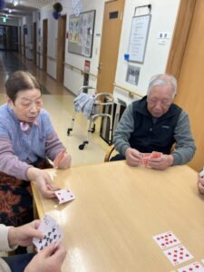 洗濯物たたみをお手伝いしてくださったり、トランプを囲んで笑い声が広がったりと、
