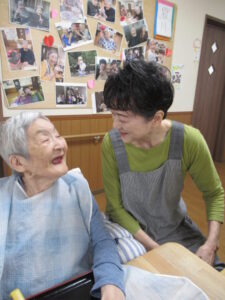 また、食事介助や散歩の場面でも、常に、入居者様のペース