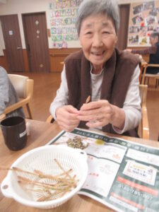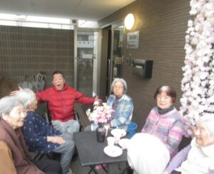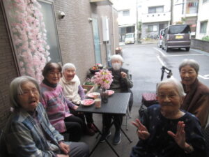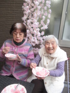 春のあたたかな日差しの中、ホームでは季節を感じる