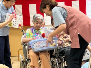 敬老会では、敬老のプレゼントを用意し喜んでいただきました。