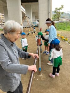 私も、、、と園児の方から元気とエネルギーを分けてもらったり