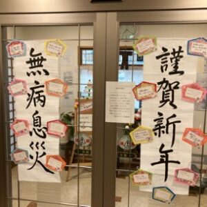 腕前のスタッフが玄関に立派な書き初めを張ってくれたりとみんなで年始の準備をして