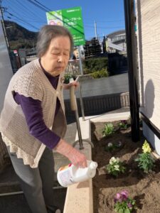 園芸が好きなスタッフは一緒のホームの周りのお花の手入れ(`・ω・´)✨