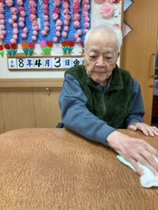 また、テーブル拭きのお手伝いも行いました✨