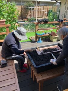 収穫後は、土のリサイクルにも取り組みました。