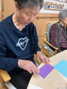 色とりどりの折り紙や画用紙を使い、ご利用者様それぞれが思い思いに飾り付け✨