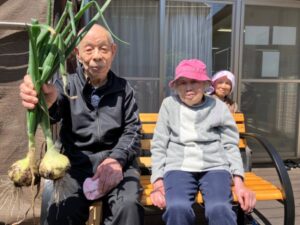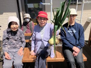 畑で大きく育った玉ねぎを見て、「立派にできとるね!」「大っきい!重たいね~!」と、皆さま自然と笑顔に😊