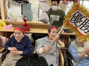 利用者様、職員一同、ハチマキを締めて気合十分💪。