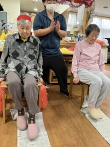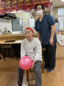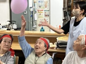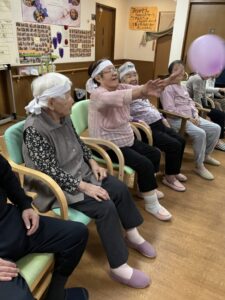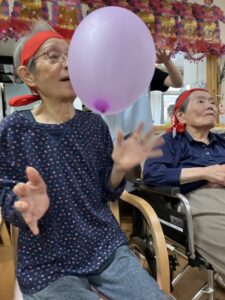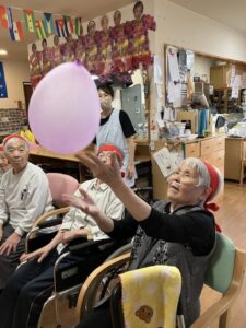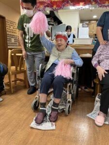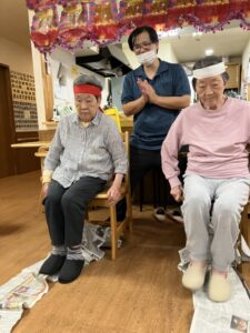 利用者様、職員一同、ハチマキを締めて気合十分💪。