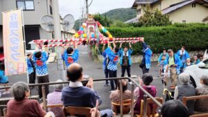 車椅子に乗った利用者様も、飾り付けられた船型の山車を引