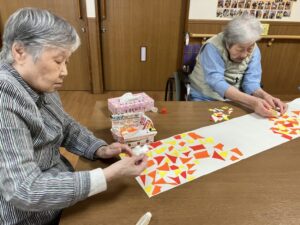 毎月テーマを決めて、ご利用者様には折り紙などで貼り絵や