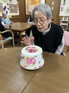 皆様と一緒にバースデーソングを歌い、笑顔全開です(^^♪