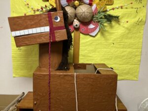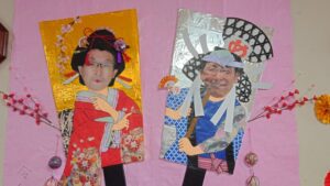ホーム長とリーダーYさんは何故か墨と絵具で罰ゲーム(笑)