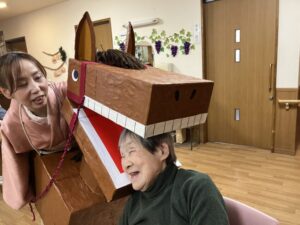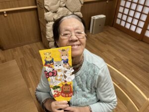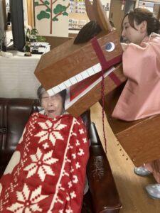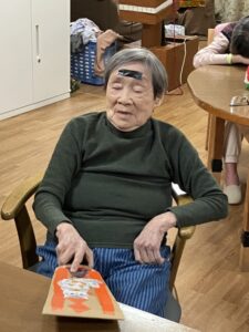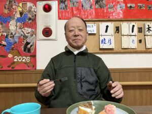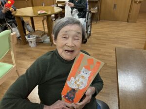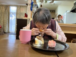 最期に職員Tさんが作ってくれたお正月仕様のおやつを皆で頂い