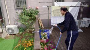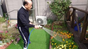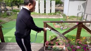 い日は、一鉢ひと鉢丁寧に水やりをしてくださいます。