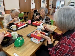 敬老会では、皆さんでお弁当を食べて職員から日頃の感謝を込めてメッセージカードをお渡ししました💐