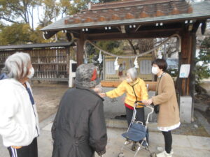 新しい年を迎え、先日、入居者の皆さまと一緒に近隣の神社へ初詣に出かけました。
