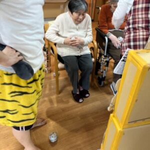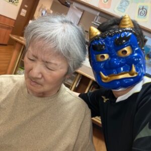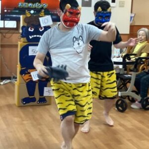 手に持った豆をしっかり狙って投げる様子や、見ている方が手を叩いて応援される様子もあり、皆さんで一緒に行事を楽しむことができました。