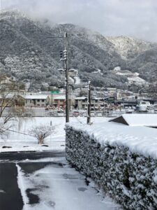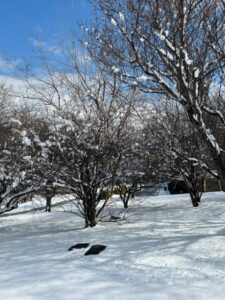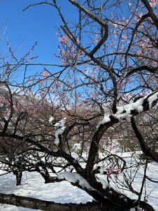 白い雪をまとった梅の木々はとてもきれいで、「こんな景色はなかなか見られないね」と話題になり、季節の移り変わりを感じるひとときとなりました。