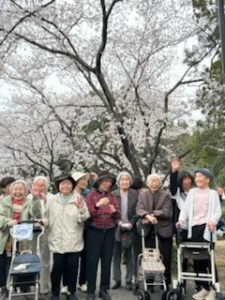 春のやわらかな陽気に包まれ、利用者様数名と一緒に近くの公園までお花見ドライブに出かけました🚗🌸