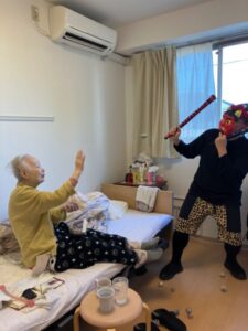 本日は節分の行事を行いました✨ 職員扮する鬼に向かって、「鬼は外!福は内!」と 元気いっぱいに豆まきを楽しみました!