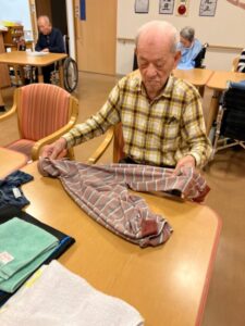 洗濯物をたたんだり、テーブルを拭いたりと、できることを少しずつ行う姿が見られます。慣れた手の動きに、これまでの暮らしがそっと感じられ、見ているこちらもほっとします🍀