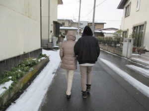 職員と毎日の日課の散歩です。ご利用者様のいろんな会話に花が咲きます。