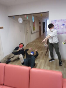 節分イベント、初めての利用者様と一緒に豆まきを行いました!職員三名必死です!