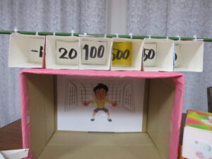得点を競い合います。もちろん何回か投げて頂いて合計得点は、利用者様に計算していただく脳トレも兼ねたゲーム!!中の得点は交換が自由です★