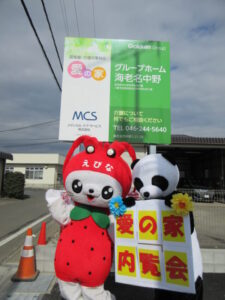地域交流のきっかけとして「えびーにゃ」ちゃん&パンダ君にもお手伝い頂きました。