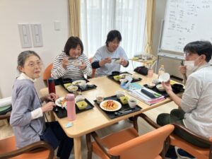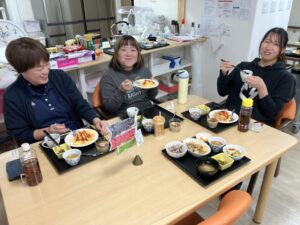 試食を通して、味付けややわらかさ、食べやすさなどを確認し、 ご利用者様に安心して美味しく召し上がっていただけるよう、 職員同士で意見交換を行いました。