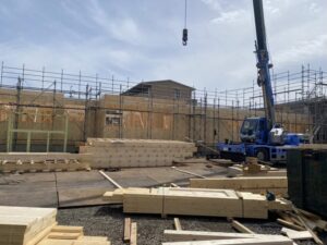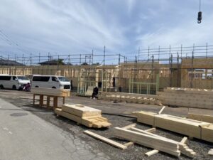 木のぬくもりを感じる構造が少しずつ形になり、