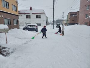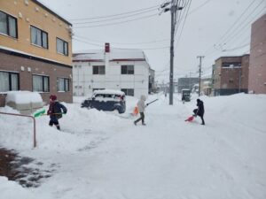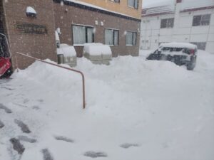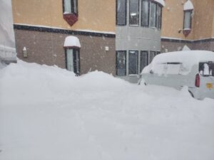車通勤の職員は駐車場に入ることも出来ず、まずは雪かきからお仕事スタート❄️