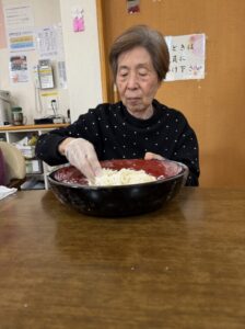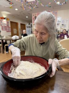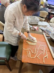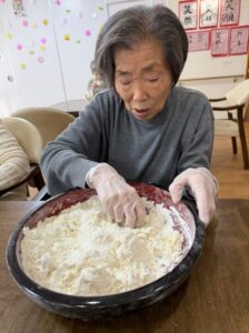 まずは生地作り。水に塩を溶かしたものと小麦粉を混ぜました!