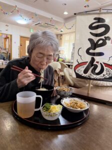 茹で上がったうどんは、つやつやとしていて見た目からおいしそう。