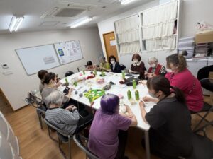 今月は、南大泉地域包括支援センターの方々の提案で、編み物教室を開催しました。