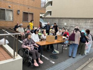 利用者様から子供たちにお菓子を渡しました。