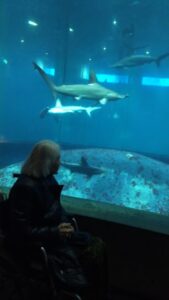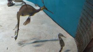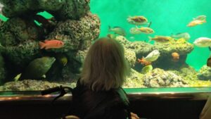 集合写真を撮ってから、班に分かれて水族館を見て回ります。