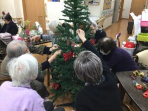 本日、中野上高田ではツリーの飾りつけを行いました。