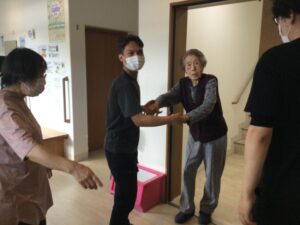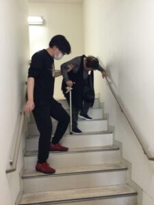 階段を下りる時にすごく緊張しましたが、ご利用者様の不安につながらないようにスタッフ一同力を合わせて無事に
