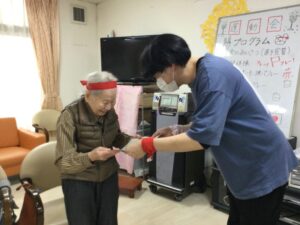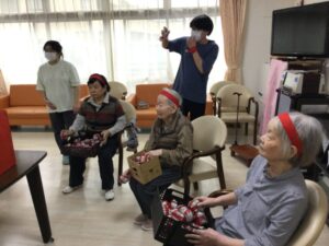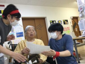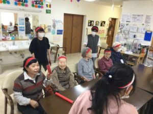 りんご~🍎、みかん~🍊と果物の名前を言ったり、いち、に、さんっと掛け声しながらの足踏み、パタカラパタカラパタカラと相手チームを見ながら大急ぎで頑張っていらっしゃり、とっても賑やかです🎵🎵