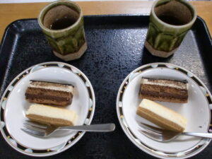 こちらは、とある日の15時に出たおやつです。カットケーキが並んでいます。