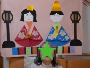 ひな人形の前ではい・ポーズ