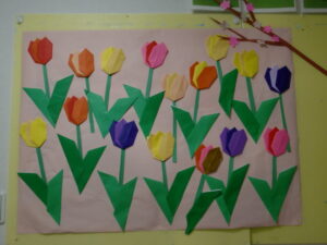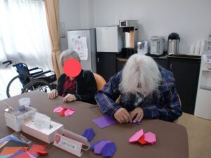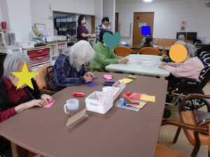 壁飾りをつくることは、手先の運動にもなりますし、また時節を思い出していただけるように、職員と一緒に制作する取り組みを行っています。