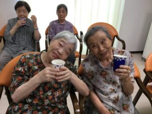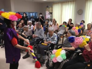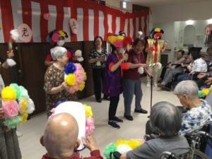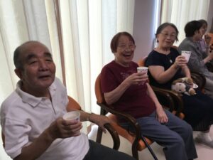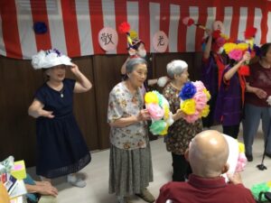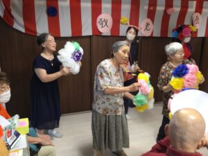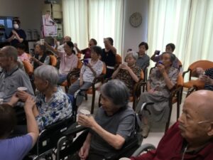 スタッフによる銭太鼓披露が終わったところで、ご利用者様にも声をかけ