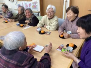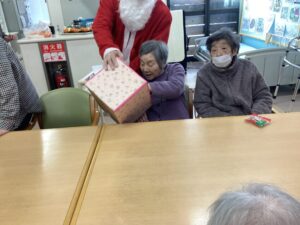 クリスマス会では、皆さまでおやつを囲みながらゆったりと団らんし、プレゼントBOXを