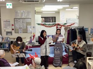 やさしく心に響く歌声に、利用者様も自然と耳を傾け、手拍子をされたり、穏やかな表情で