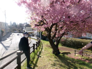 近所の河津桜が咲き、散歩がてら見に行きました。