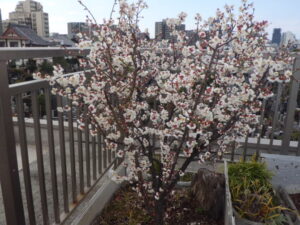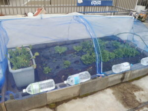 2月に梅の花が咲き誇り、花壇を利用して畑とし、大根やほうれん草、小松菜、レタス等を植えています。興味のある方々が水くれをしたり、肥料やりをしてくださっています。成長した野菜を収穫し、食材として食事にお出しすると皆様とても感動されています。