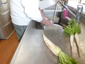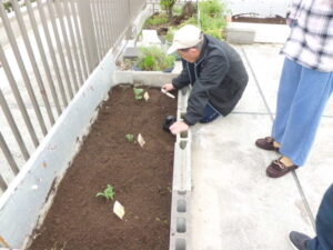 都市型軽費老人ホーム中野上高田では屋上に梅や柿、桜の木が植えてあり、畑では野菜を育てています。